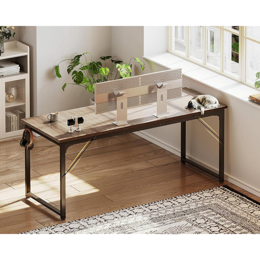 Sofanext Computer Desk 63 Inch, Study Writing Table for Large Spaces, Work Desk for Home Office, Simple Modern Desk with Headphone Hooks, Grey Oak