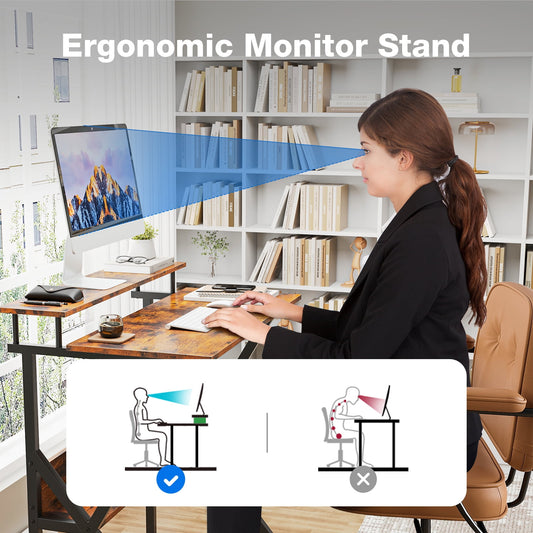 Computer Desk with Drawers and Storage Shelves, 48 inch Home Office Desk with Monitor Stand, Work Study PC Desk for Small Spaces, Rustic Brown