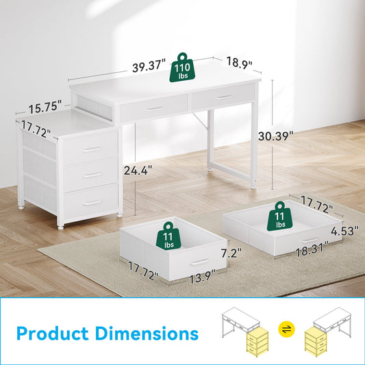 White Computer Desk with Drawers & Storage Shelves, 40 Inch Corner Desk for Home Office Bedroom, Small Teen PC Desks with Fabric Drawer, White