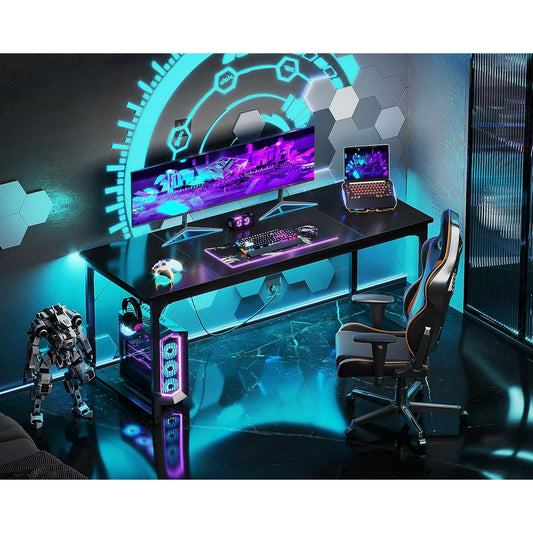 Sofanext Computer Desk 63 Inch, Study Writing Table for Large Spaces, Work Desk for Home Office, Simple Modern Desk with Headphone Hooks, Black