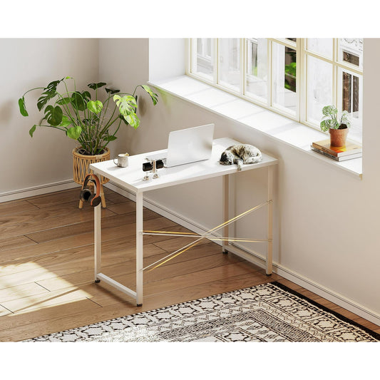 Sofanext 32 Inch Small Home Office Computer Desk, Student Writing Table for Small Spaces, Simple Modern Desk with Headphone Hooks, White