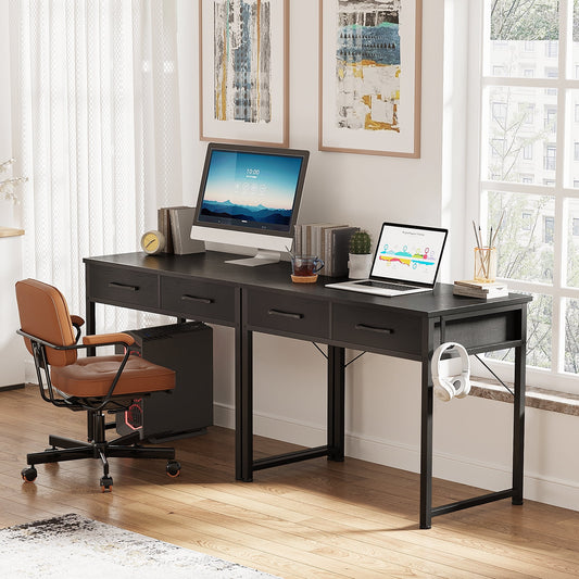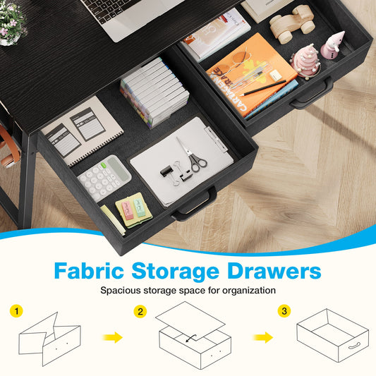48 inch Computer Desk with 4 Fabric Drawers — Home Office Desks with Storage, Writing Desk with Side Hook, Kids Desk Study/Work Table for Bedroom and Small Space, Black