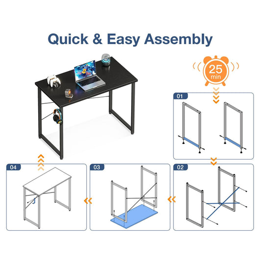 Sofanext 32 inch Small Home Office Computer Desk, Student Writing Table for Small Spaces, Simple Modern Desk with Headphone Hooks, Black
