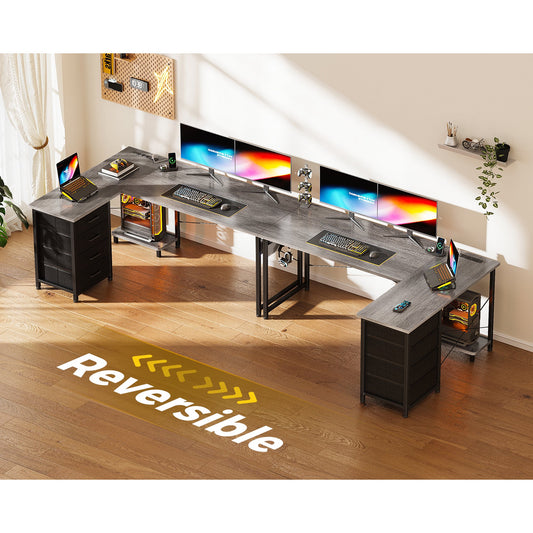Sofanext Reversible Modern Simple Style L Shaped Desk with Charging Station and Drawers, Gray Oak