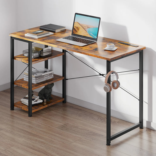 Modern 40 inch Writing Desk with 3 Tier Shelves for Small Space, Computer Table with Power Outlet & USB Charging Port, Vintage