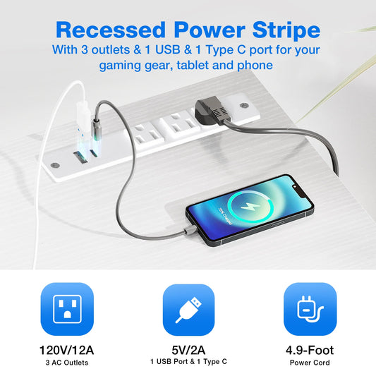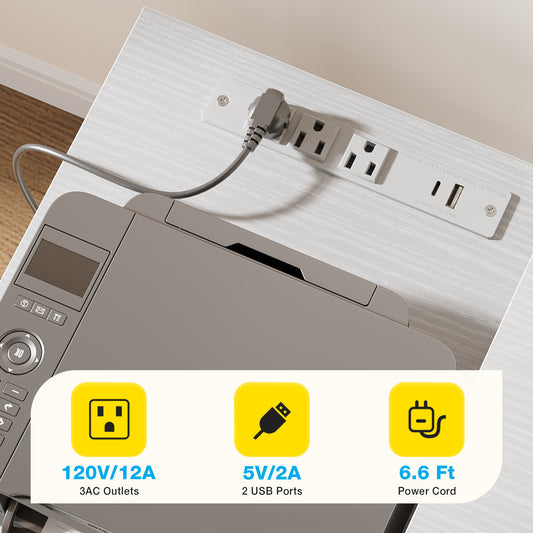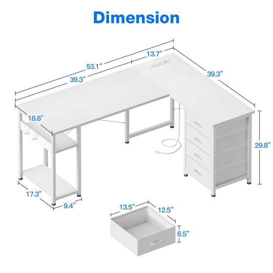 Sofanext Reversible Modern Simple Style L Shaped Desk with Charging Station and Drawers, Pure White