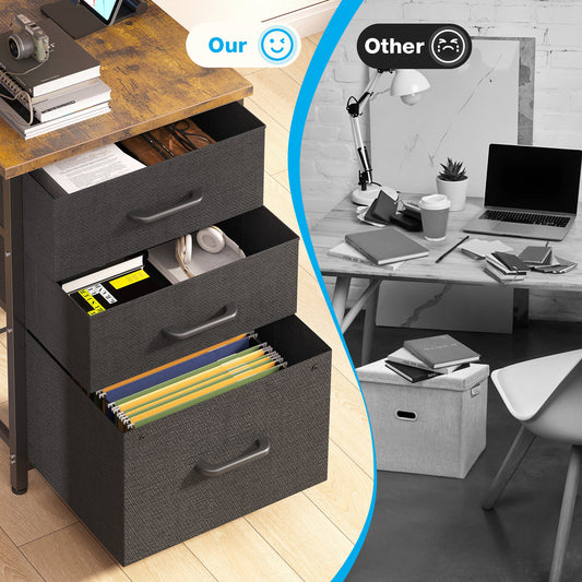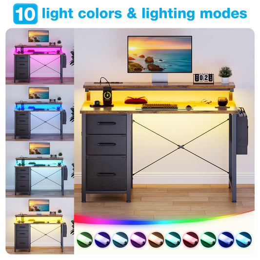 40 inch Computer Desk with Power Outlets & LED Lights, Home Office Desk with 3 Drawers & Adjustable Monitor Shelf,, Writing Desk with Storage Bag, Vintage
