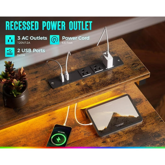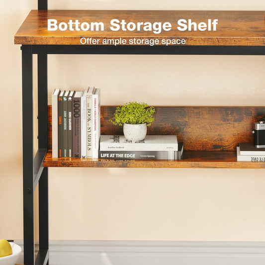 48 inch Simple Design Computer Desk with Charging Station, Modern Office Desk with Shelves, Vintage