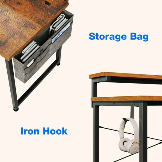Computer Writing Desk 40 inch, Sturdy Home Office Table, Work Desk with a Storage Bag and Headphone Hook, Vintage