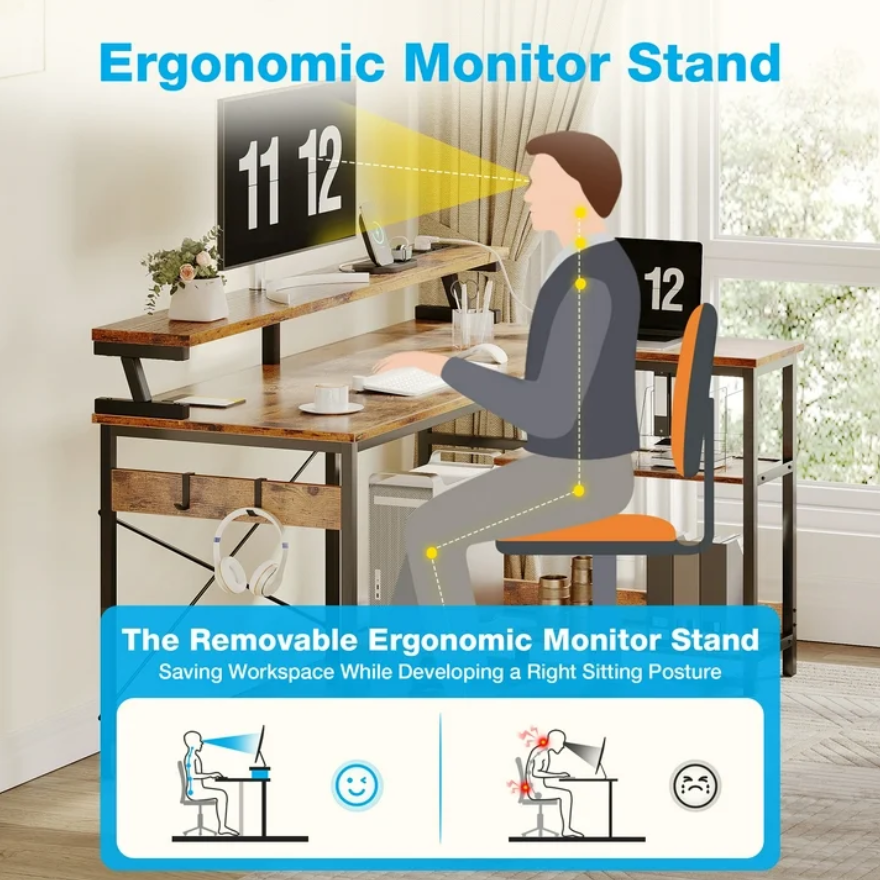 - The monitor shelf on this home office desk provides a dedicated space to display your computer monitor, creating a comfortable and ergonomic setup.