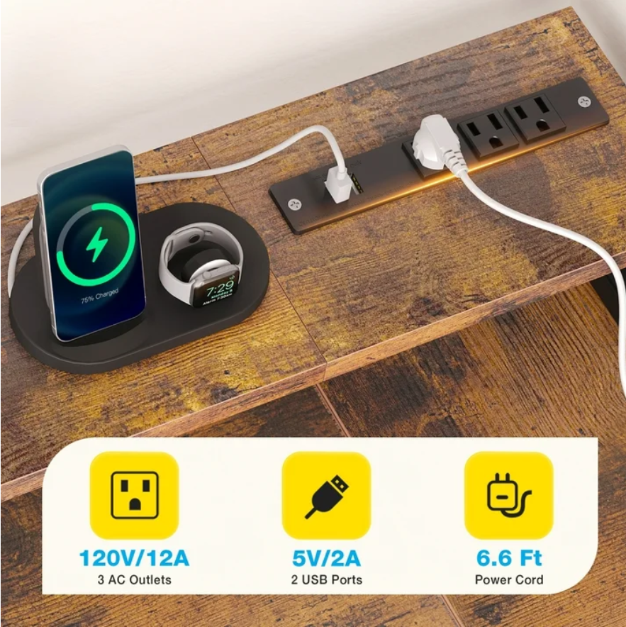- The desk features built-in LED lights and a power outlet, providing a convenient and illuminated workspace.
