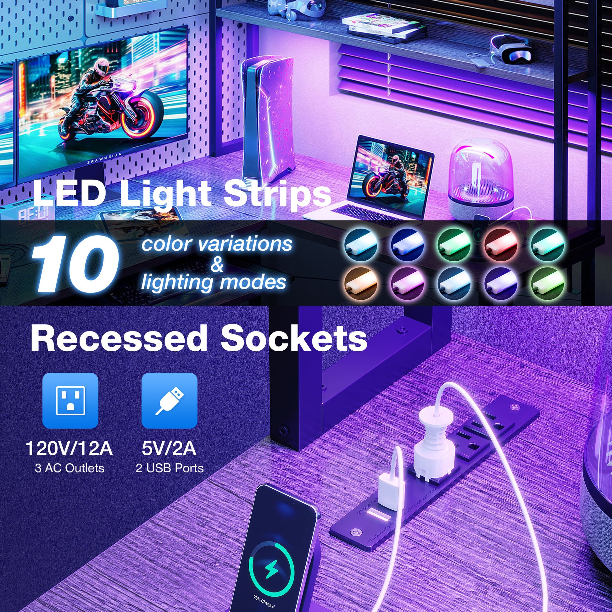 - Dynamic Lighting & Functional Aesthetics: A vibrant LED strip with 10 colors and modes sets the perfect mood, blending productivity with play. Combined with sleek design elements like the ergonomic layout and modern finishes, this desk elevates both style and practicality for offices, gaming rigs, or study spaces.