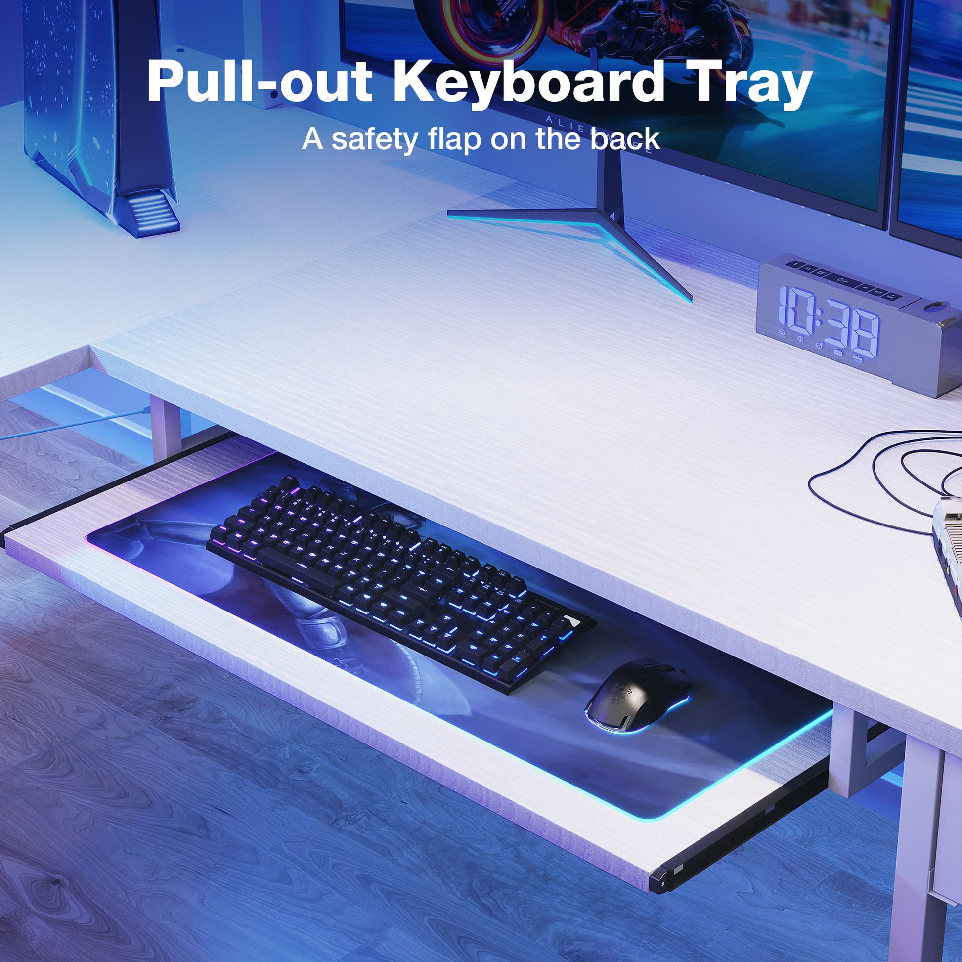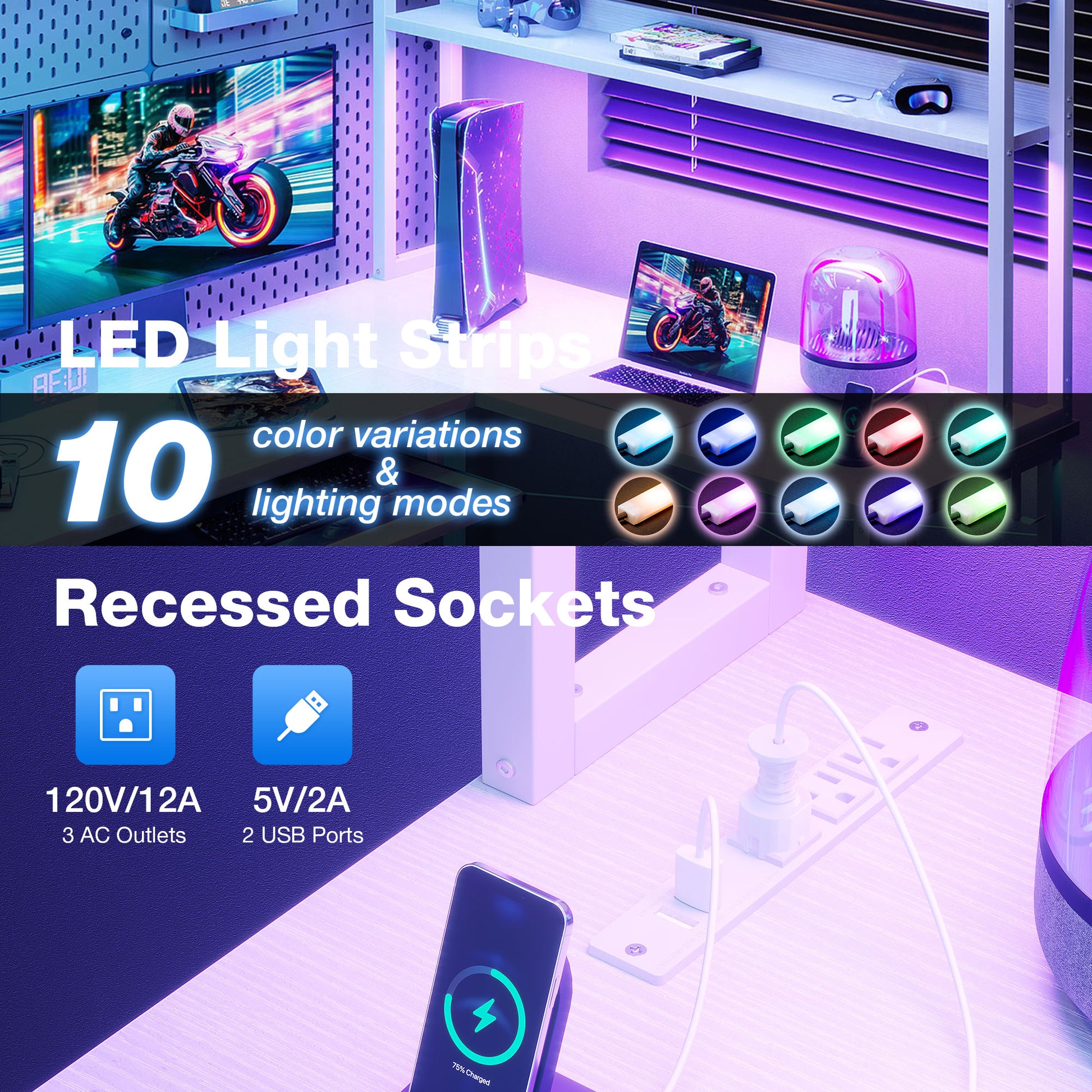- Dynamic Lighting & Functional Aesthetics: A vibrant LED strip with 10 colors and modes sets the perfect mood, blending productivity with play. Combined with sleek design elements like the ergonomic layout and modern finishes, this desk elevates both style and practicality for offices, gaming rigs, or study spaces.