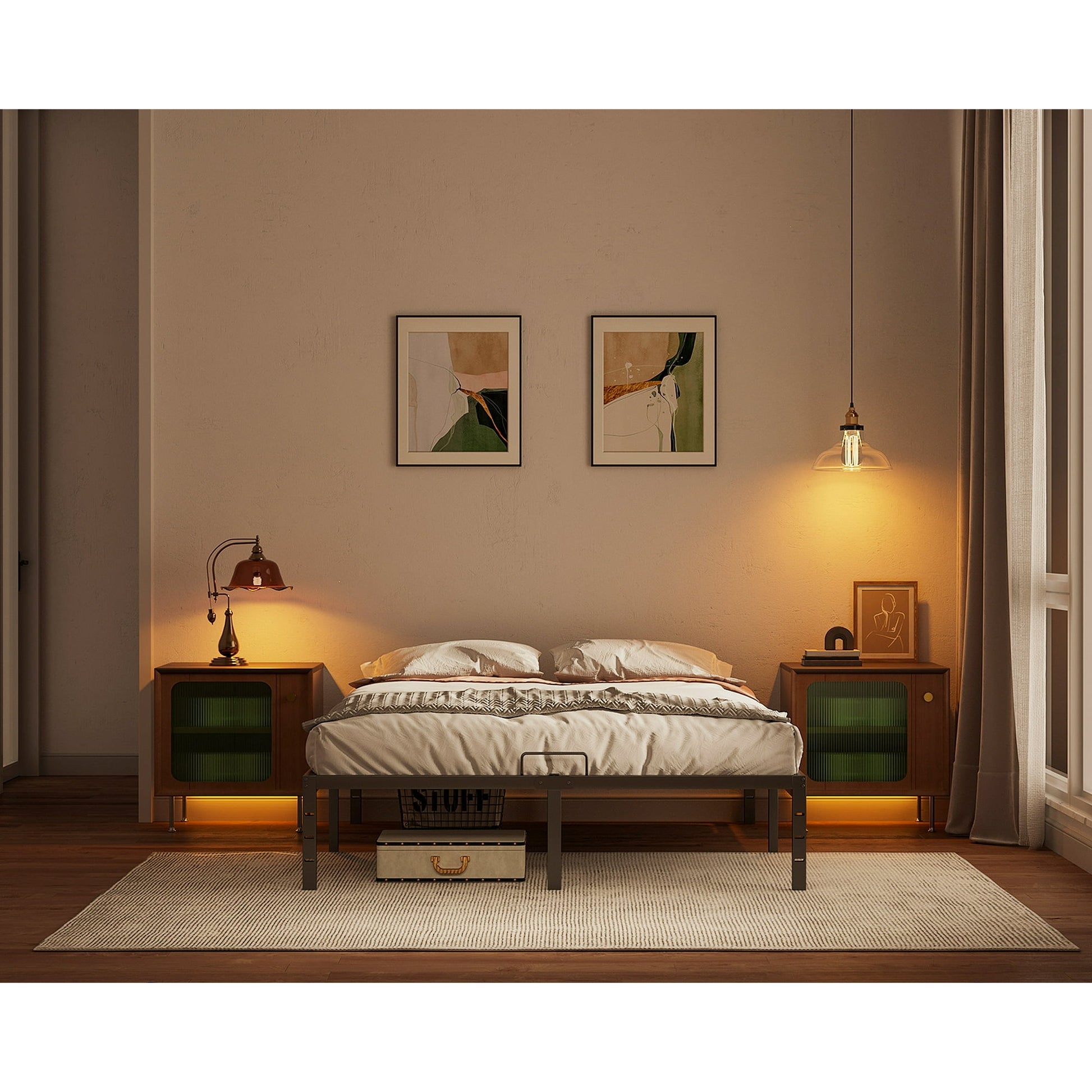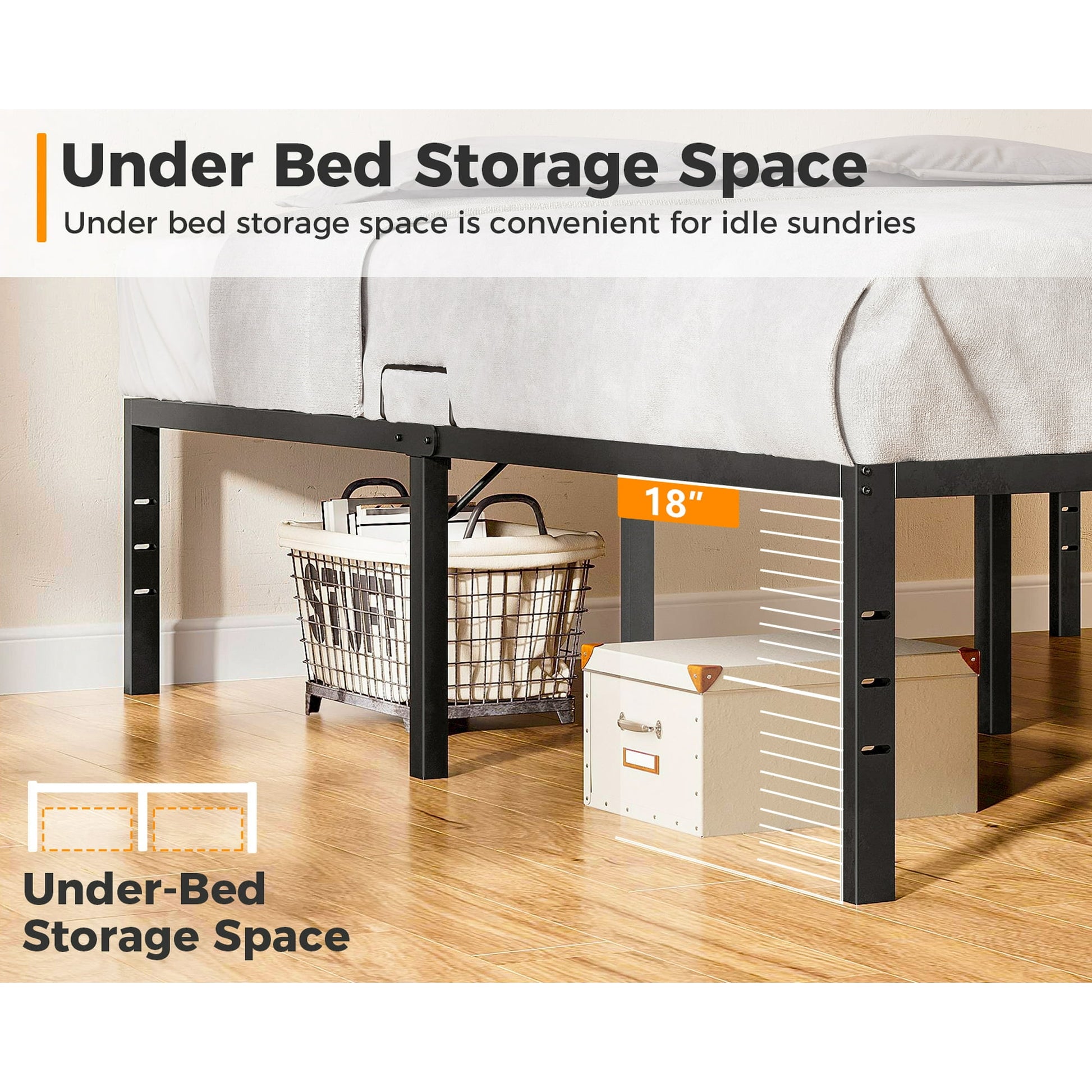 Sofanext 18 inch Metal Bed Frame Queen Size, Heavy Duty Steel Platform Bed Frame with Storage Space, No Box Spring Needed, Noise Free, Black