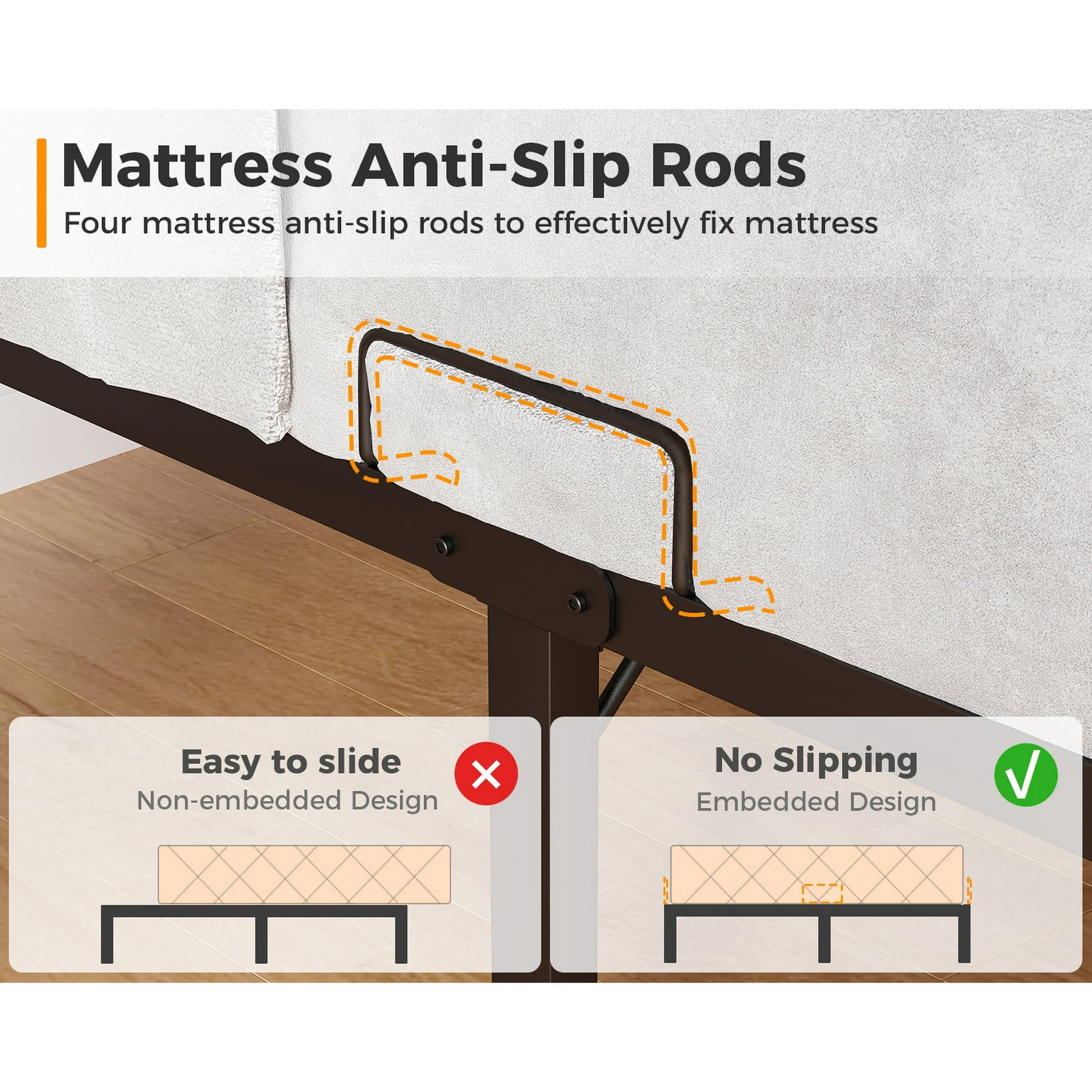 - Strong & Durable Construction – Built with a heavy-duty metal frame and reinforced steel slats, this bed frame offers superior stability and support. The sturdy legs and center support ensure a noise-free sleeping experience for years to come.